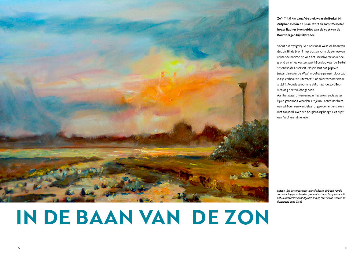 In september verschijnt het boek De Berkel, in de baan van de zon. De 120 pagina’s tellende uitgave bevat fraaie schilderijen en tekeningen van de Zutphense kunstschilder Jan Baggen. Jan heeft jarenlang voor de Wegener dagbladen (waaronder het Zutphense Dagblad) door de regio gereisd, waarbij hij op locatie tekeningen maakte en zijn persoonlijke indrukken beschreef. Dat materiaal, in combinatie met de schilderijen van de Berkel die hij de afgelopen jaren heeft gemaakt, is opgenomen in dit boekwerk.